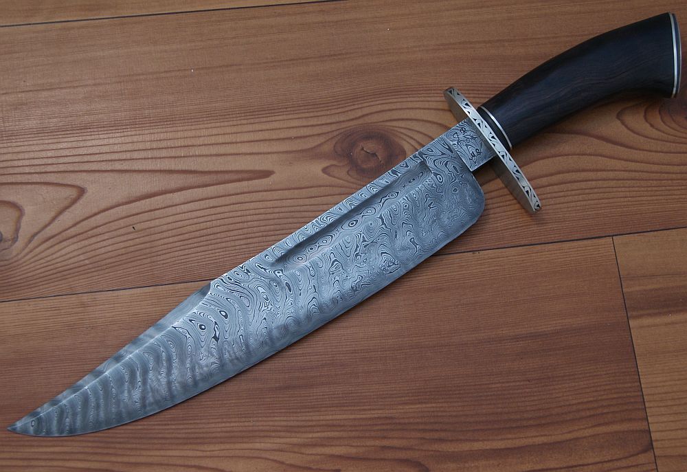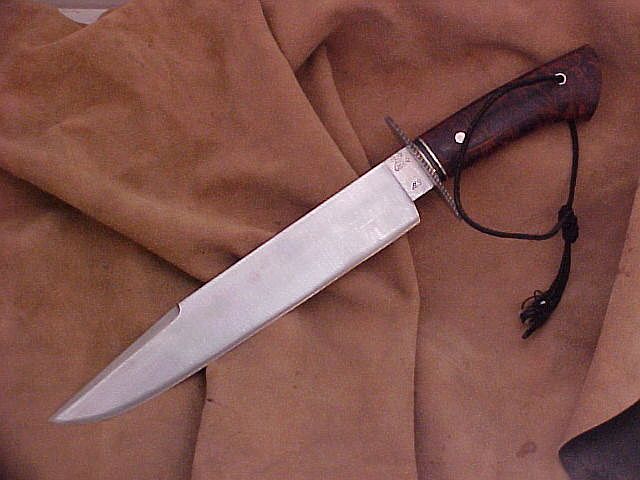 ![]() ALT 5-2010 The Carrigan Bowie: The blade is 6-1/2" and is 10-1/2" overall. ![]() ALT # 6-2010 The Blade is 11-1/4" and it is 16-1/2" overall. The grip is African Black Wood and the fittings are nickel silver.