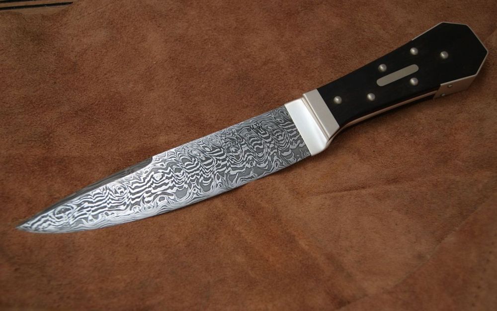 2012- ALT #4 This is my first engraving. ![]() 2012 ALT #7 The handle is Walrus Ivory I have carved. The top section of the blade is 800 layers of tear drop pattern, the bottom section is 600 layers of "W" pattern. ![]()