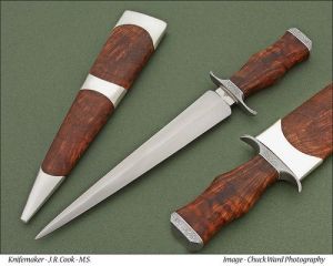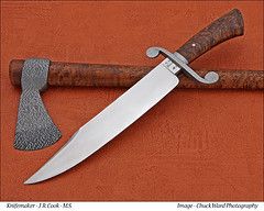 over the years for you to get an idea of what my works looks like. Some of the knives are just one of a kind and some are of the standard line of which I make. The standard line knives will have a model name listed. Like the Arkansas Razorback, or the Tuxedo Bowie. I will be changing these out from time to time, so come back when you get the time to look around. |